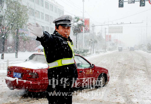 依然有夢:12日傍晚6點多,我和朋友經過黃河路與邦杰路交叉口,紅綠燈停電,一片黑暗中,三位交警冒著風雪,在警車燈的照明下忙著疏導交通,真是很辛苦!