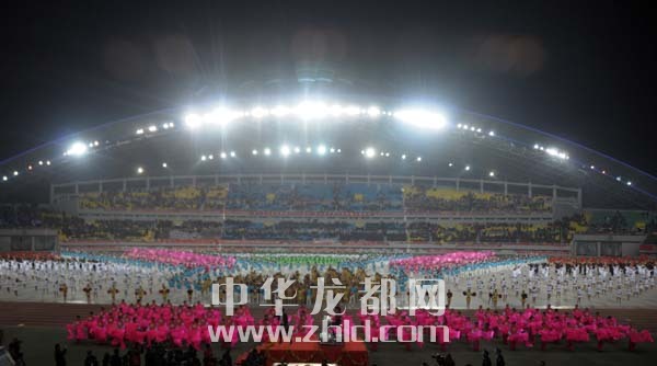 在開幕式大型文體表演《龍騰盛世·周口頌歌》中,5000余名演員為現(xiàn)場觀眾奉獻(xiàn)了一場極具濃郁周口特色的文藝演出,集中展示了我市深厚的歷史積淀、厚重的文化底蘊及現(xiàn)代農(nóng)業(yè)發(fā)展的壯麗篇章和科學(xué)發(fā)展、共建和諧、實現(xiàn)富民強市的蓬勃生機,讓現(xiàn)場觀眾享受了一次豐盛的文化盛宴。