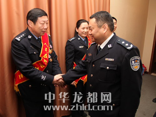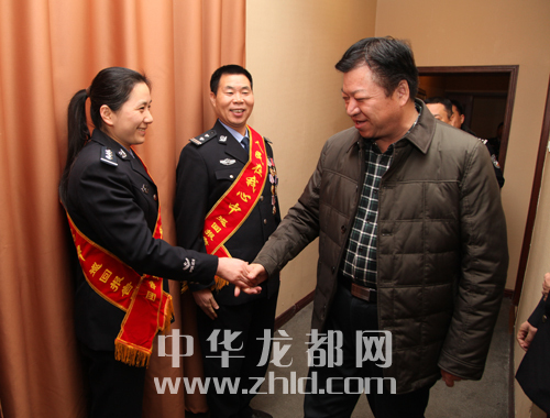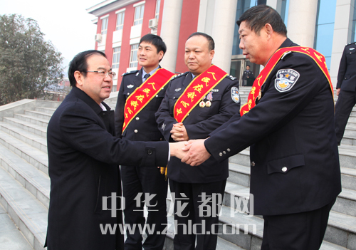 ????報(bào)告會(huì)前,周口市委常委、政法委書記朱家臣,副市長劉國連,市政府黨組成員、公安局長姚天民親切會(huì)見了報(bào)告團(tuán)成員并合影留念。