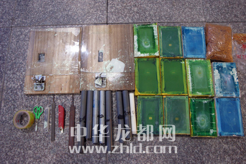 ????同年11月5日,在獲知許某、韓某夫婦再次從廣東購得假幣,并已伙同孟某完成防偽加工工序的準確信息后,為避免假幣流入市場,周口公安機關經(jīng)偵部門“收網(wǎng)”。11月6日,市公安局犯罪偵查支隊經(jīng)偵三個大隊全體民警在文昌分局許灣中隊、沈丘縣公安局經(jīng)偵大隊的協(xié)同配合下,直撲犯罪窩點。于當天下午2時許,在沈丘縣抓獲犯罪嫌疑人韓某、孟某及其他涉案人員,并在孟某家中當場繳獲假幣數(shù)百萬元(圖一),假人民幣加工模具12套(圖二)。