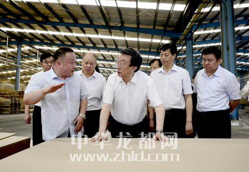 ???????在大河林業(yè)有限公司,郭庚茂進(jìn)車間、看工藝、問發(fā)展,他對(duì)企業(yè)通過調(diào)整產(chǎn)品結(jié)構(gòu)、加強(qiáng)戰(zhàn)略合作,開發(fā)差異化產(chǎn)品、提高產(chǎn)品附加值的做法表示贊許,并對(duì)企業(yè)計(jì)劃開發(fā)的無醛板進(jìn)行詳細(xì)了解,要求加快研發(fā)進(jìn)度,盡快研制成功。