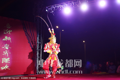 ????還記得小時(shí)候我們搬著小板凳到村頭看電影或聽(tīng)?wèi)騿??如今啊,農(nóng)民不再看電影聽(tīng)?wèi)蛄?,而是開(kāi)始在村頭辦“村晚”啦。2月2日晚上,太康縣老冢鎮(zhèn)孟莊行政村舉辦了一臺(tái)猴年“村晚”。演出現(xiàn)場(chǎng)震天的鼓點(diǎn)和著嗩吶的節(jié)拍,熱鬧非凡。英俊的公子、羞怯的大家閨秀,神采奕奕的大爺大媽?zhuān)粋€(gè)個(gè)生動(dòng)的角色,一段段幽默詼諧的節(jié)目,吸引著附近數(shù)十個(gè)村的兩萬(wàn)余名村民在此觀看。