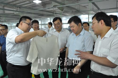 ????集中開工活動前,徐光、劉繼標等市領(lǐng)導在周口阿爾本制衣有限公司調(diào)研。 記者 王亞輝 攝