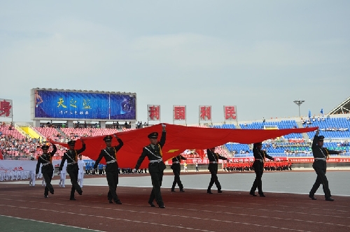 ????當(dāng)日16時(shí),國旗方陣、會(huì)旗方陣、彩旗隊(duì)、裁判員、運(yùn)動(dòng)員依次入場,一個(gè)個(gè)意氣風(fēng)發(fā)的團(tuán)隊(duì)引來現(xiàn)場觀眾陣陣掌聲和歡呼聲:周口川匯區(qū)代表團(tuán)首先入場,他們步伐矯健,英姿勃發(fā);市委辦公室代表團(tuán)精神抖擻,意氣風(fēng)發(fā);市委宣傳部代表團(tuán)邁著矯健的步伐走向主席臺(tái)……