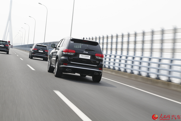 為了顯示出大切諾基的全能性,組織者為試駕者提供了多種路況條件,既有山村國道、高速公路,也有人為制造出來的高難度越野路段。在鋪裝道路上行駛,大切諾基就像一部舒適性極佳的轎車,平順線性的V6發(fā)動機與8AT變速箱的配合非常默契,可以從容應對路面上的不同狀況,無論是低速跟車還是中段加速超車,它都可以在給予車內(nèi)乘員積極舒適性的前提下輕松應對。大腳油門超車,即便是發(fā)動機轉速進入高轉速區(qū),也不會出現(xiàn)那種聲嘶力竭的吼聲,充足動力儲備讓可以輕松完成超越。雖然不是一款以運動性為賣點的車型,但大切諾基的公路性能并不差,在高速公路上巡航,它有著非常不錯的行駛穩(wěn)定性,對于風燥、路噪的控制也非常不錯,并不會有太多擾人聲音傳進車內(nèi);高速通過彎路時,前雙叉臂、后多連桿式懸掛會給予車身足夠支撐,雖然其側傾要略大于純粹運動轎車,但也絕對不會出現(xiàn)讓人不安的倒塌感。