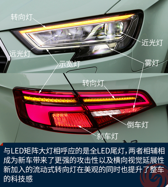 全新設(shè)計(jì)的后擴(kuò)散器也進(jìn)一步提升了A3 Sportback的運(yùn)動(dòng)特性,配合左側(cè)雙出的排氣以及上部的小尾翼,整體造型十分動(dòng)感。而高配置的A3 Limousine會(huì)用一根鍍鉻飾條裝點(diǎn),相比S-Line套件“文明”了許多。與LED矩陣大燈相呼應(yīng)的是全LED尾燈,兩者相輔相成為新車帶來了更強(qiáng)的攻擊性以及橫向視覺延展性,新加入的流動(dòng)式轉(zhuǎn)向燈在美觀的同時(shí)也提升了整車的科技感。