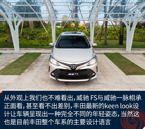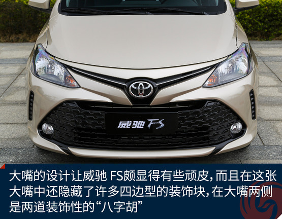 從外觀上我們也不難看出,威馳 FS與威馳一脈相承,正面看,甚至看不出兩車的差別,豐田最新的keen look設(shè)計(jì)讓車輛呈現(xiàn)出一種完全不同的年輕姿態(tài),當(dāng)然這也是目前豐田整個(gè)車系的主要設(shè)計(jì)語(yǔ)言,就是要讓車輛更顯年輕運(yùn)動(dòng)。大嘴的設(shè)計(jì)讓威馳 FS頗顯得有些頑皮,而且在這張大嘴中還隱藏了許多四邊型的裝飾塊,在大嘴兩側(cè)是兩道裝飾性的“八字胡”,除此之外是一雙大大的眼睛,這一副調(diào)皮可愛的模樣,相信不少年輕人都會(huì)喜歡。