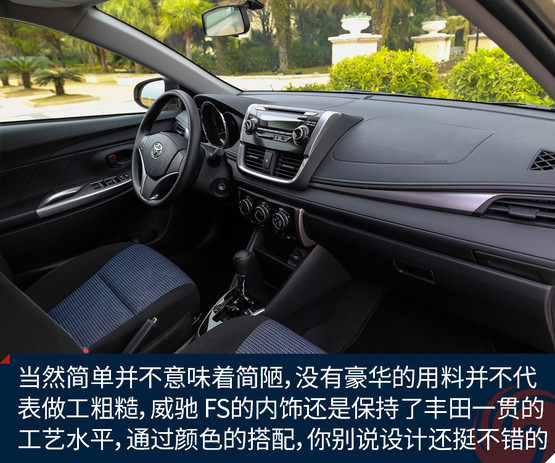 當(dāng)然簡(jiǎn)單并不意味著簡(jiǎn)陋,沒有豪華的用料并不代表做工粗糙,威馳 FS的內(nèi)飾還是保持了豐田一貫的工藝水平,并且通過(guò)黑色與銀色相互的搭配,你別說(shuō),這個(gè)內(nèi)飾的設(shè)計(jì)還挺不錯(cuò)的。