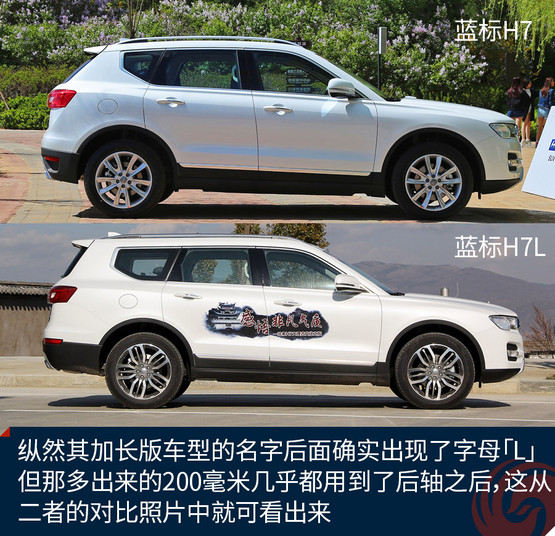 提到加長(zhǎng),我腦子中的第一反應(yīng)是軸距加長(zhǎng)幾十甚至上百毫米,然而,哈弗藍(lán)標(biāo)H7L并不是這樣。縱然其加長(zhǎng)版車(chē)型的名字后面確實(shí)出現(xiàn)了字母「L」,但那多出來(lái)的200毫米幾乎都用到了后軸之后,這從二者的對(duì)比照片中就可看出來(lái)。