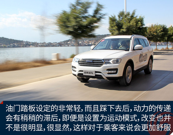 既然是7座車(chē)型,藍(lán)標(biāo)H7L在調(diào)校方面也更加注重舒適,這一點(diǎn)從油門(mén)踏板可以很明顯的感覺(jué)到。油門(mén)踏板設(shè)定的非常輕,而且踩下去后,動(dòng)力的傳遞會(huì)有稍稍的滯后,即便是設(shè)置為運(yùn)動(dòng)模式,改變也并不是很明顯,很顯然,這樣對(duì)于乘客來(lái)說(shuō)會(huì)更加舒服。相比于油門(mén)踏板,剎車(chē)踏板則力度適中且比較線性。