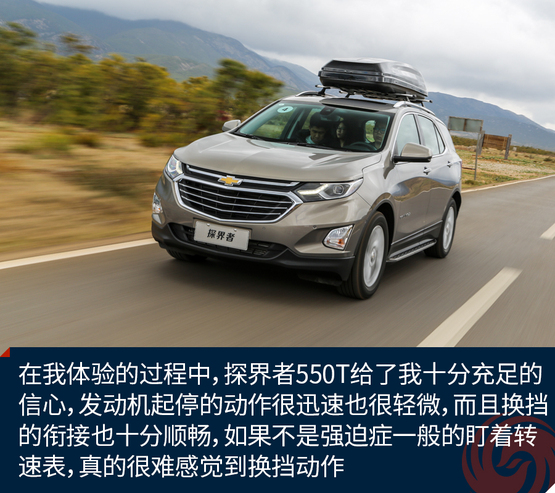 在我體驗(yàn)的過(guò)程中,探界者550T給了我十分充足的信心,發(fā)動(dòng)機(jī)起停的動(dòng)作很迅速也很輕微,而且換擋的銜接也十分順暢,如果不是強(qiáng)迫癥一般的盯著轉(zhuǎn)速表,真的很難感覺(jué)到換擋動(dòng)作。