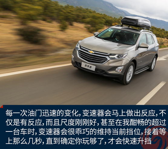 日常駕駛時(shí)的平順已讓我有些驚訝,而我進(jìn)一步試著去挑逗油門時(shí),探界者給了我更大的驚喜,每一次油門迅速的變化,變速器會(huì)馬上做出反應(yīng),不僅是有反應(yīng),而且尺度剛剛好,甚至在我酣暢的超過(guò)一臺(tái)車時(shí),變速器會(huì)很乖巧的維持當(dāng)前擋位,接著等上那么幾秒,直到你又安靜地做回美男子之后,才會(huì)快速的升到合適的擋位,這種高度的默契感是原來(lái)國(guó)產(chǎn)的雪佛蘭車上未曾見(jiàn)到的。