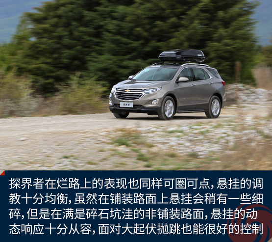 探界者在爛路上的表現(xiàn)也同樣可圈可點(diǎn),懸掛的調(diào)教十分均衡,雖然在鋪裝路面上懸掛會(huì)稍有一些細(xì)碎,但是在滿是碎石坑洼的非鋪裝路面,懸掛的動(dòng)態(tài)響應(yīng)十分從容,而且面對(duì)一些大起伏的拋跳也能很好的控制車身的起伏。