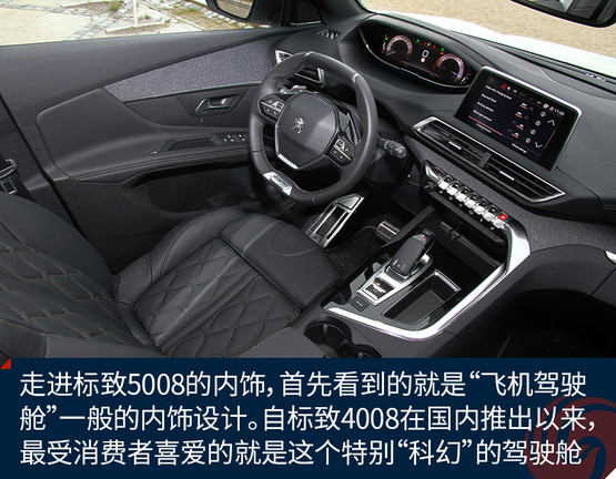 走進(jìn)標(biāo)致5008的內(nèi)飾,首先看到的就是標(biāo)致最新的“飛機(jī)駕駛艙”一般的內(nèi)飾設(shè)計(jì)。自標(biāo)致4008在國內(nèi)推出以來,最受消費(fèi)者喜愛的就是這個(gè)特別“科幻”的駕駛艙,相同的設(shè)計(jì)也保留在了標(biāo)致5008之上。