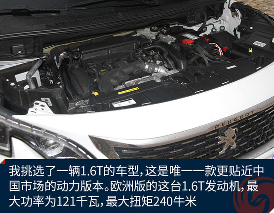 所以我挑選了一輛1.6T的車型,這是唯一一款更貼近中國市場的動(dòng)力版本。歐洲版的這臺(tái)1.6T發(fā)動(dòng)機(jī),最大功率為121千瓦,最大扭矩240牛米,大概相當(dāng)于國內(nèi)標(biāo)致4008 1.6T的350THP版本。