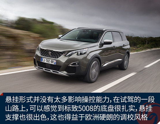 不過懸掛形式并沒有太多影響這款車的操控能力,在試駕的一段山路上,可以感覺到標(biāo)致5008的底盤很扎實(shí),懸掛支撐也很出色,這也得益于歐洲硬朗的調(diào)校風(fēng)格。