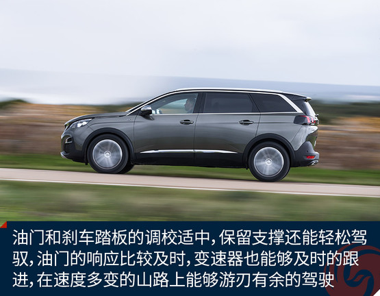 油門和剎車踏板的調(diào)校也如是,踏板腳感適中,保留支撐還能輕松駕馭,并不像多數(shù)歐系車那樣沉重。油門的響應(yīng)比較及時(shí),變速器也能夠及時(shí)的跟進(jìn),在速度多變的山路上能夠游刃有余的駕駛。唯一的問題是低功率的1.6T在動(dòng)力上沒有突出的表現(xiàn),尤其在上坡時(shí),加速會(huì)稍感吃力,但是想到這事一款家用SUV,這也就不是問題了。而且標(biāo)致5008在國內(nèi)的主力車型將會(huì)是1.8T版本,動(dòng)力還會(huì)再上一個(gè)臺(tái)階。