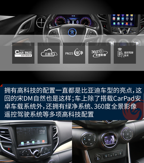 ????????內(nèi)飾方面,宋DM保持了家族式設(shè)計(jì),具有較強(qiáng)立體感,并采用了大量的軟性材料包裹。配置方面,新車(chē)將配備有全景天窗、360度全景影像、遙控駕駛、三輻式多功能平底方向盤(pán)以及電子手剎等配置。宋DM除了配備ESP車(chē)身電子穩(wěn)定系統(tǒng),TCS牽引力控制系統(tǒng)、胎壓監(jiān)測(cè)等電子科技配置,還搭載CarPad多媒體系統(tǒng)、PM2.5綠凈系統(tǒng)等豪華配置。