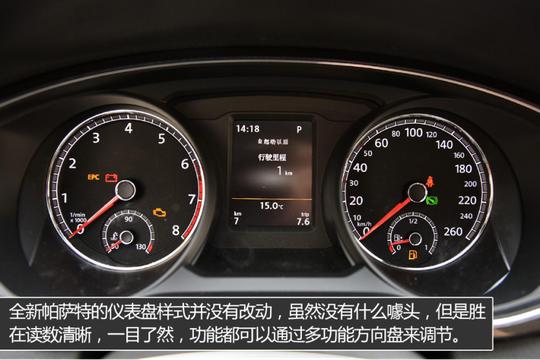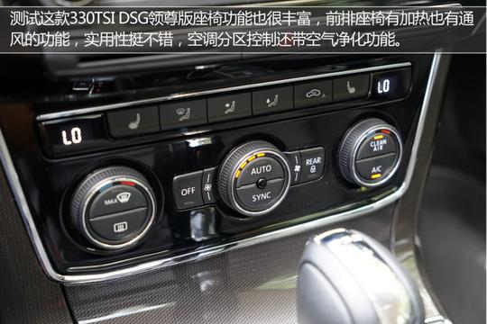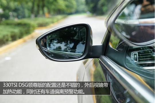 ????????測試的新帕薩特330TSI DSG領尊版車型,外部配置也是不錯的,前后泊車雷達、倒車影像、外后視鏡加熱以及車道偏離預警等功能,都還是很實用的。