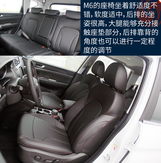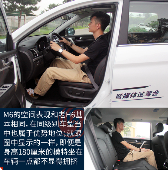 ????????M6的空間表現(xiàn)在同級別車型當中屬于優(yōu)勢地位,主要原因就是內(nèi)部空間和H6基本沒區(qū)別。特別得說新車的座椅,很柔軟、舒服,包裹性也不錯。不過坐姿真的有點高,前排座椅調(diào)到最低后還是能看到整個機艙蓋,這樣倒是為了安全性;后排的座椅還要更高一些,有點類似劇院式的設計,給后排乘客減少了壓抑感。