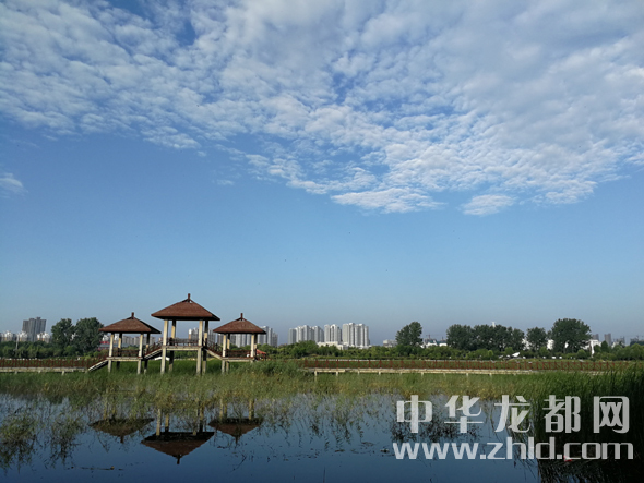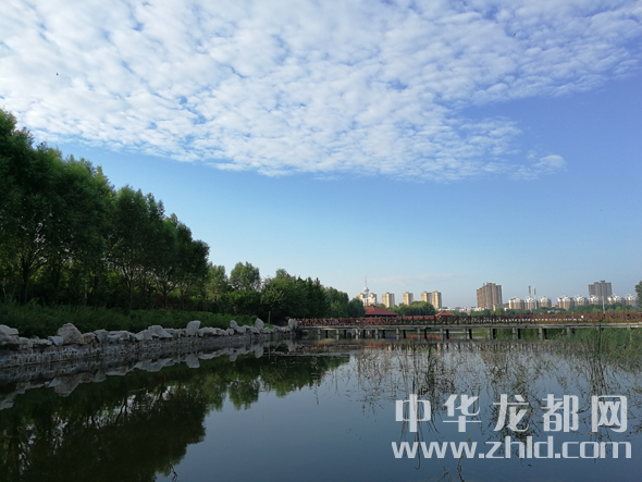 12月17日,天氣晴好,周口公園在藍(lán)天白云的映襯下顯得分外美麗。