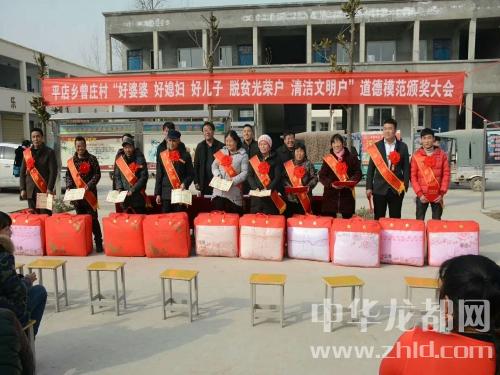 中華龍都網(wǎng)訊(周口報(bào)業(yè)全媒體記者 付永奇 趙永昌 文/圖))2月10日下午,商水縣平店鄉(xiāng)曾莊小學(xué)操場(chǎng)內(nèi),人頭攢動(dòng)、熱鬧非凡,村里評(píng)選出來(lái)的10位好婆婆、好媳婦、好兒子、清潔文明戶、脫貧光榮戶等“五好”群眾代表身披綬帶、胸戴紅花,臉上都洋溢著幸福的喜悅;一些民間文藝團(tuán)體分別助興表演了挑花籃、扇子舞、廣場(chǎng)舞等喜慶的節(jié)目,把現(xiàn)場(chǎng)氣氛烘托得異常隆重?zé)崃??!盀楹霌P(yáng)社會(huì)公德、家庭美德,提升群眾素質(zhì)和文明程度,春節(jié)來(lái)臨之際我們召開(kāi)‘五好’表彰大會(huì),下面有請(qǐng)鄉(xiāng)黨委副書(shū)記、鄉(xiāng)長(zhǎng)徐汝濤給大家講話......”隨著主持人、鄉(xiāng)紀(jì)委書(shū)記劉新光的開(kāi)場(chǎng)白,臺(tái)下響起了一陣熱烈的掌聲?!伴_(kāi)展好婆婆、好媳婦、好兒子、清潔文明戶、脫貧光榮戶等模范家庭人物評(píng)選是我鄉(xiāng)精神文明建設(shè)工作的一項(xiàng)重大舉措,也是脫貧攻堅(jiān)、農(nóng)村人居環(huán)境整治、文明鄉(xiāng)風(fēng)提升的部分內(nèi)容,更是弘揚(yáng)孝親敬老、勤勞致富、講究衛(wèi)生等優(yōu)良傳統(tǒng)的需要。全鄉(xiāng)各村都要通過(guò)召開(kāi)評(píng)選表彰大會(huì),引導(dǎo)廣大人民群眾學(xué)先進(jìn)、爭(zhēng)先進(jìn),為文明和諧平店建設(shè)做出更大的貢獻(xiàn)......”徐汝濤提出殷切的希望。曾莊行政村“兩委”成員、駐村工作隊(duì)、第一書(shū)記及部分群眾200余人參加了會(huì)議。與會(huì)領(lǐng)導(dǎo)為此次層層推薦評(píng)選出的好婆婆、好媳婦、好兒子、清潔文明戶、脫貧光榮戶頒發(fā)了榮譽(yù)證書(shū)和獎(jiǎng)品。據(jù)村支部書(shū)記曾紀(jì)靈介紹,這些“五好”模范都有感人的故事,或是講究衛(wèi)生、勤儉持家,孝老敬親、患難與共;或是鄰里互助、脫貧致富;他們用實(shí)際行動(dòng)證明了自己對(duì)文明風(fēng)尚的價(jià)值追求,在生活中書(shū)寫(xiě)了一個(gè)個(gè)接地氣的好故事,為廣大家庭樹(shù)立了好榜樣。受表彰的好婆婆胡秀英說(shuō):“把媳婦當(dāng)閨女,啥時(shí)候也不會(huì)吵架生氣......”清潔文明戶朱國(guó)申說(shuō):“農(nóng)村環(huán)境臟亂差,咱要帶頭改變它......”脫貧光榮戶劉前進(jìn)說(shuō):“國(guó)家扶貧政策好,不如早點(diǎn)摘掉貧困帽!”