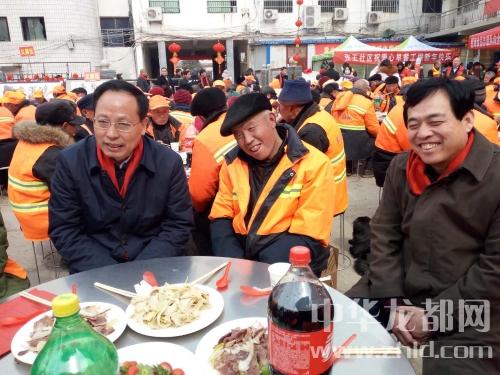 中華龍都網(wǎng)訊(周口報(bào)業(yè)全媒體記者 馬治衛(wèi))2月14日上午,太康縣“溫暖環(huán)衛(wèi)工團(tuán)團(tuán)圓圓過大年”大型公益活動(dòng)隆重舉行。市政府副市長、市黨外知識分子聯(lián)誼會(huì)會(huì)長張廣東應(yīng)邀出席并與環(huán)衛(wèi)工一起共進(jìn)午餐。
