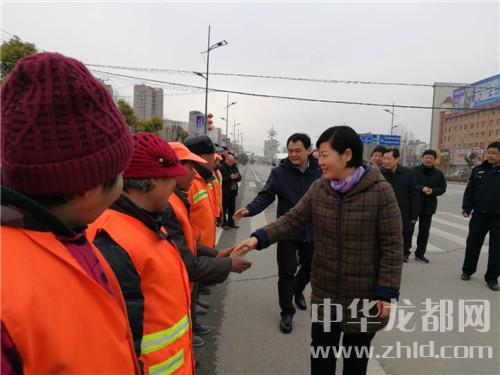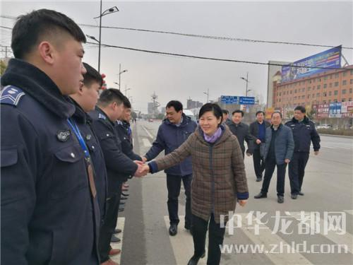 在鄲城縣城新華路與迎賓大道路口,羅文閣、李全林和一線值勤的環(huán)衛(wèi)工人、城管隊(duì)員一一握手,深切關(guān)心環(huán)衛(wèi)工人和城管隊(duì)員的冷暖?!翱词侄鄾觯┖顸c(diǎn)兒呀。大年三十了,你們放棄和家人團(tuán)圓吃餃子的機(jī)會(huì),在為我們的縣城保潔,我們城市的清潔有賴于你們。你們辛苦了,給你們拜個(gè)年,祝你們身體健康?!绷_文閣向環(huán)衛(wèi)工人遞上慰問(wèn)金時(shí),樸實(shí)的話語(yǔ)、殷殷的關(guān)懷把黨的溫暖涌向環(huán)衛(wèi)工人的心窩兒?!安恍量?,領(lǐng)導(dǎo)來(lái)看俺,俺里比吃餃子暖和?!杯h(huán)衛(wèi)工人邊鼓掌邊道出了內(nèi)心的激動(dòng)。