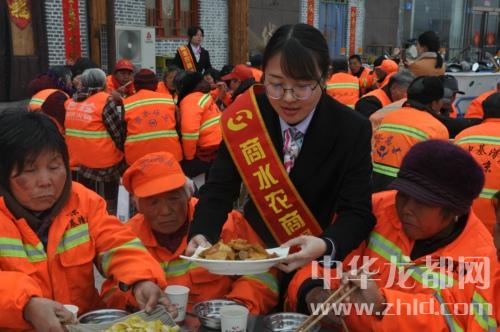 春節(jié)以來(lái),城區(qū)人口增加,環(huán)衛(wèi)工人工作量大增,許多工人吃不上應(yīng)時(shí)熱飯。為感謝環(huán)衛(wèi)工人的辛苦工作,愛心企業(yè)商水農(nóng)商行精心為當(dāng)日值班的環(huán)衛(wèi)工作提供了免費(fèi)午餐,并為每位環(huán)衛(wèi)工作提供了一份精美禮品?!吧显?!”菜肴上夠十個(gè),農(nóng)商行工作人員端上來(lái)大盆元宵?!袄哿艘簧衔纾茉谶@和大家一道過(guò)元宵佳節(jié),真是太感謝農(nóng)商行的領(lǐng)導(dǎo)!”65歲的環(huán)衛(wèi)工人趙明亮吃著甜滋滋的元宵高興地說(shuō)。