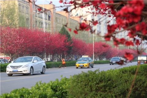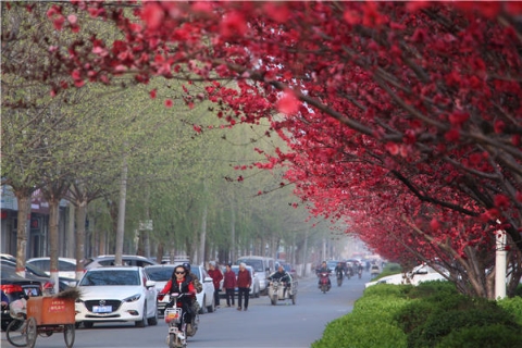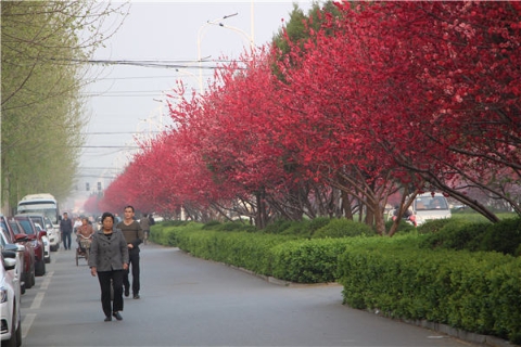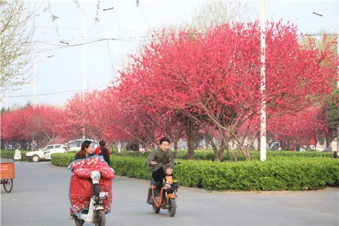 楊樹、垂柳、法桐,這是常見的綠化樹,可是你見過整條道路用桃樹做綠化的嗎?在周口市建設(shè)大道西段,長達(dá)1公里的主干道兩側(cè)種滿桃樹。現(xiàn)在正值陽春三月桃花盛開,整條道路成了一片花的海洋,儼然是鬧市區(qū)里的世外桃源。