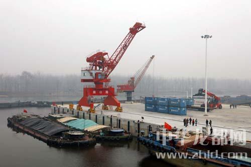 2017年12月30日,一艘滿載集裝箱的貨輪從周口中心港出發(fā),沿沙潁河向東朝連云港方向駛去。這是周口中心港首次承接集裝箱運輸業(yè)務。通過海河聯運,周口中心港??垦b卸的貨物,從品類到總量都明顯增加。加拿大的小麥、澳大利亞的大麥、美國的大豆、東南亞的紅木、馬來西亞的布敦巖、印度尼西亞的鎳礦石等齊聚周口中心港,然后通過陸路運輸到周邊各地。