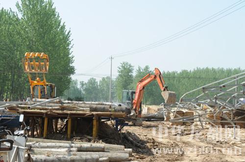中華龍都網(wǎng)訊(周口報業(yè)全媒體記者 張勁松 通訊員 蘇千 文/圖)4月18日,東新區(qū)城管中心在該區(qū)國土局、許灣鄉(xiāng)政府的配合下,出動執(zhí)法人員120多名,執(zhí)法車輛10輛,對許灣鄉(xiāng)程寺行政村6處違法占地、違章建設(shè)進(jìn)行強(qiáng)制拆除。