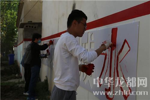 當(dāng)日16時許,記者在該村看到,干凈整潔的水泥路像玉帶在村中盤旋,街道兩側(cè)栽植不久的小樹在向人們招手,坑塘四周干凈整潔,綠樹環(huán)繞,塘水清澈,梳理有致,房前屋后干凈整潔……天空中雖然下著雨,但是記者遠(yuǎn)遠(yuǎn)的就聽到了群眾的談笑聲和機(jī)械的轟鳴聲,走近,原來是村民們不顧天氣下雨,依然在自發(fā)地進(jìn)行道路清理工作。記者看到,該村墻體文化更讓村子增加了很多的“內(nèi)涵”。