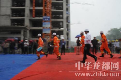 中華龍都網(wǎng)訊(周口報業(yè)全媒體記者 朱海龍)5月11日上午,在商水縣建業(yè)城項目施工工地,商水縣舉辦建筑施工現(xiàn)場應急救援演練,200多人冒雨觀摩現(xiàn)場演練。