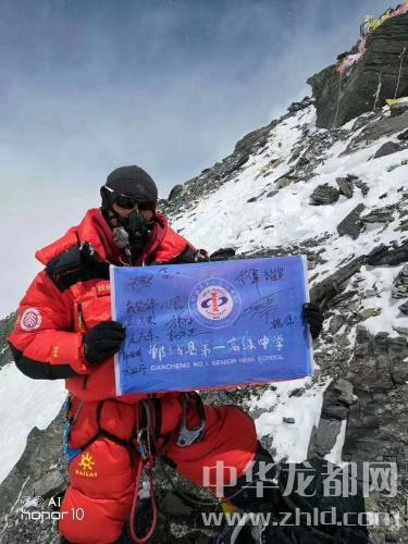 5月15日,一個值得紀(jì)念的日子,錢俊偉率珠峰登山隊(duì)歷經(jīng)艱難險阻,終于到達(dá)了海拔8844.43米處的世界之巔——珠穆朗瑪峰!在登上頂峰的那一刻,錢俊偉展開母校校旗,留下了珍貴的歷史瞬間:承載著幾代鄲城一高人光榮與夢想的蔚藍(lán)色校旗飄揚(yáng)在地球之巔珠穆朗瑪峰峰頂,與藍(lán)天融為一體,仰望蒼穹星辰,俯瞰大地海洋,正應(yīng)了那句話:我們的征途是星辰大海。