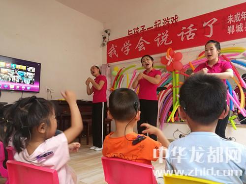 家長如此開朗,孩子們的世界肯定會更加陽光。記者隨著鄲城縣殘聯(lián)理事長楊瑞林和聾兒語訓(xùn)中心主任邵莉娜來到了二樓聾兒語訓(xùn)學(xué)習(xí)班?!拔覍W(xué)會說話了”,大愛至簡,教學(xué)班里僅此一句標(biāo)語,墻上是一面鏡子,鏡子上貼滿了老師和孩子們一起做的彩氣球,旁邊是一架鋼琴,4位語訓(xùn)老師正在張著大口(說話標(biāo)準(zhǔn)口形)、動作夸張地給孩子上聽力課,老師邊彈琴,邊做手指舞、跳少兒舞,孩子們慢慢聽、慢慢模仿、慢慢張口咿呀跟著唱……