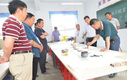 李世棟、姚海城都是當地的書法愛好者,經常寫寫畫畫,時常在電視或電腦上看一些書法名家的講座,但是還都沒有過與書法名家面對面交流的經歷。所以,他們一聽說有書法家進校園的活動,都急匆匆地從收麥現場向王坡寨學校趕去。