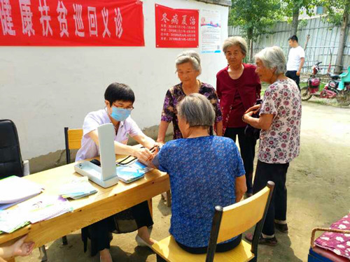 8時40分許,醫(yī)護人員在文莊社區(qū)衛(wèi)生室的醫(yī)務(wù)人員的協(xié)助下搭起了臨時義診臺,為村民測血糖、量血壓,并針對測量結(jié)果給出用藥指導(dǎo),為村民提供健康咨詢服務(wù),現(xiàn)場解答健康問題,并根據(jù)部分村民身體狀況提出合理的防治建議。