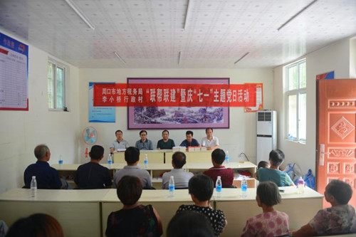 中華龍都網(wǎng)訊(周口報業(yè)全媒體記者 馬治衛(wèi) 通訊員 蘇童)為喜慶中國共產(chǎn)黨建黨97周年,夯實貧困村基層組織基礎(chǔ),促進(jìn)脫貧攻堅工作深入開展,按照中共周口市委組織部和周口市直工委要求,6月26日上午,周口市地稅局組織相關(guān)科室負(fù)責(zé)人走進(jìn)幫扶村太康縣王集鄉(xiāng)李小村行政村開展“黨建聯(lián)幫聯(lián)建暨慶七一主題黨日”活動。這是該局在幫扶村“兩委”成功換屆之后第一次舉辦主題黨日活動,市、縣、鄉(xiāng)各級領(lǐng)導(dǎo)及駐村工作隊和幫扶村30余名黨員代表參加了此次活動。