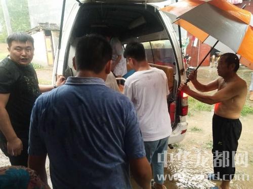 下午五點(diǎn)五十五分,鄲城縣第二人民醫(yī)院救護(hù)車到達(dá)現(xiàn)場(chǎng)。在經(jīng)過(guò)醫(yī)護(hù)人員的檢查后,建議送到醫(yī)院進(jìn)一步治療。此時(shí),大雨如瓢潑一般,幫扶隊(duì)員羅明飛等人不顧大雨傾盆,抬擔(dān)架,打雨傘,將病人王洪花抬上了救護(hù)車,羅明飛等人全身的衣服和鞋襪全部濕透。
