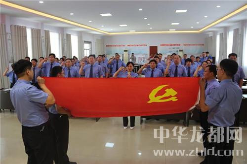 最后,全體干警面對黨旗進(jìn)行了莊嚴(yán)的宣誓,鏗鏘的誓言堅(jiān)定了干警們永遠(yuǎn)跟黨走的信念!