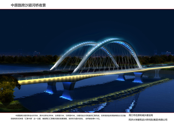 這次集中開工的14座橋梁,包含中原路跨沙潁河橋新建工程,流沙河大成路橋、洼沖溝政通路橋、洼沖溝人和路橋、流沙河騰飛路橋新建工程,以及9座老橋梁景觀改造工程,均位于城市主次干道的重要節(jié)點,總投資5.6億元。其中,新建的中原路跨沙潁河大橋是其中最大的工程,橋長837米,橋?qū)?5米,建安費(fèi)投資估算4.2億元,建成后,沙潁河南北通行更加順暢。