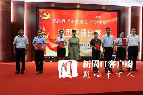 比賽結(jié)束后,中共鹿邑縣委黨校副校長韓華周對(duì)此次比賽進(jìn)行了點(diǎn)評(píng),認(rèn)為各參賽選手都圍繞主題,以小見大,只微見著,充分彰顯了時(shí)代性和針對(duì)性、思想性和藝術(shù)性的有機(jī)統(tǒng)一,做到了正面宣傳,獲得好的授課效果。希望他們在接下來的工作和生活中,進(jìn)一步加強(qiáng)黨性鍛煉、堅(jiān)定理想信念,永遠(yuǎn)保持共產(chǎn)黨人的先進(jìn)性和純潔性,做名副其實(shí)的共產(chǎn)黨人!李向宏、梁建松、付吉廣、武衛(wèi)東還依次為獲獎(jiǎng)選手頒獎(jiǎng)并合影留念。