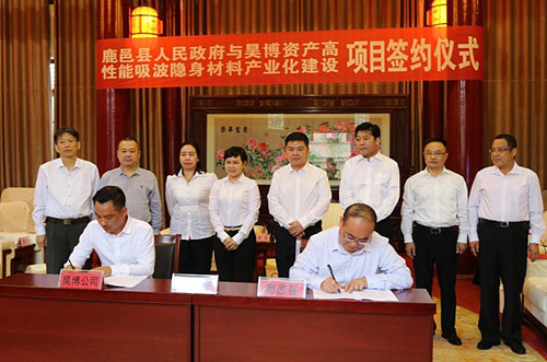 儀式上,閆家明首先代表縣四個(gè)班子領(lǐng)導(dǎo)和百萬(wàn)鹿邑人民對(duì)前來參加簽約儀式的李佳一行表示歡迎和感謝。他說,昊博資產(chǎn)高性能吸波隱身材料產(chǎn)品屬于新型材料,又是軍民融合項(xiàng)目,該項(xiàng)目的落地就實(shí)現(xiàn)全縣產(chǎn)業(yè)轉(zhuǎn)型升級(jí)具有里程碑意義。他指出,近年來,鹿邑縣實(shí)施“產(chǎn)業(yè)興城、文化立縣”發(fā)展戰(zhàn)略,堅(jiān)持五區(qū)聯(lián)動(dòng)、推進(jìn)項(xiàng)目建設(shè),今年共謀劃項(xiàng)目131個(gè),總投資311億元,今年計(jì)劃總投資180億元,其中,列入省重點(diǎn)項(xiàng)目7個(gè)。經(jīng)過近年來的努力,鹿邑縣產(chǎn)業(yè)集聚區(qū)晉升為全省二星級(jí),被評(píng)為“全省十快產(chǎn)業(yè)集聚區(qū)”。在與昊博資產(chǎn)洽談交流后,縣委縣政府十分重視,經(jīng)過多方考察,一致認(rèn)為該項(xiàng)目符合國(guó)家產(chǎn)業(yè)政策,項(xiàng)目簽約落地以后,縣委縣政府將成立建設(shè)指揮部,全力以赴支持項(xiàng)目建設(shè)、企業(yè)發(fā)展。