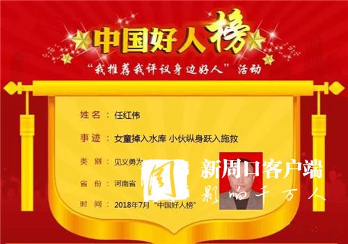 7月30日,中央文明辦全國道德模范與身邊好人現(xiàn)場交流活動(dòng)在長春舉行,現(xiàn)場發(fā)布了7月“中國好人榜”,太康縣任紅偉光榮入選7月份見義勇為類中國好人榜。目前,太康縣入選中國好人榜人數(shù)已達(dá)39人。