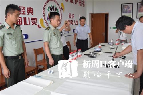 為進(jìn)一步充實官兵的警營文化生活,喜迎建軍91周年,7月30日下午,周口市青年書法家協(xié)會會長李為等人走進(jìn)東新區(qū)消防大隊,現(xiàn)場揮毫潑墨,用飽蘸感情的書法作品向消防官兵表達(dá)了節(jié)日祝福。