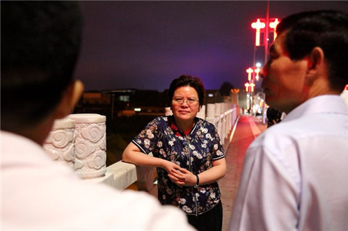 扶溝縣長張穎波夜查城區(qū)防汛情況