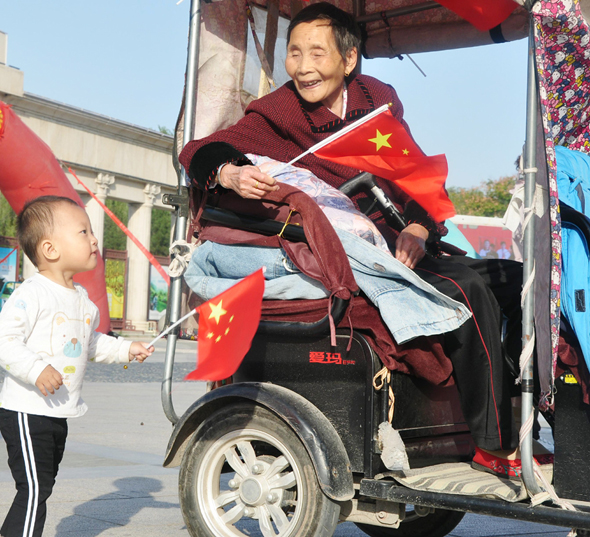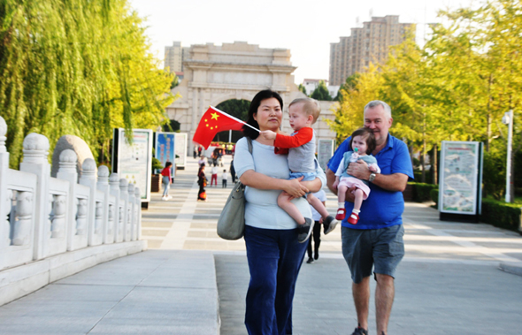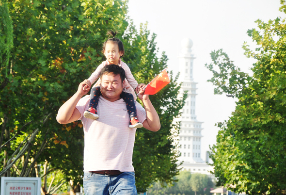 “看著滿眼的國旗紅,心情特別激動,真心為祖國的發(fā)展與強大感到驕傲和自豪?!?0月1日上午,市民王先生帶著家人來到周口公園,感受濃濃的國慶氛圍。