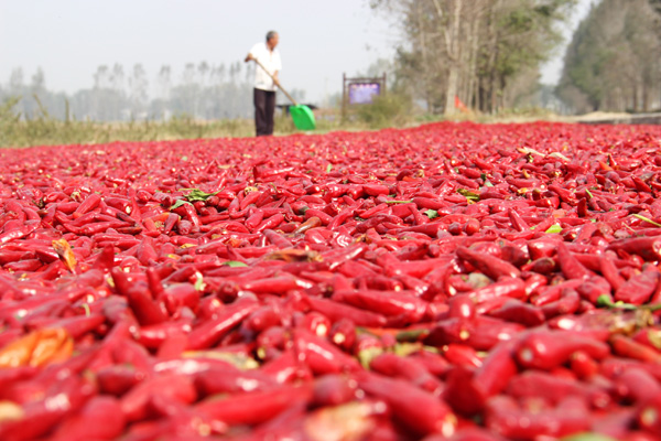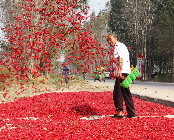 近年來(lái),商水縣郝崗鎮(zhèn)大力實(shí)施辣椒產(chǎn)業(yè)扶貧,通過(guò)黨員干部帶動(dòng)、結(jié)對(duì)貧困戶(hù)扶持發(fā)展,種植萬(wàn)畝以上小辣椒,實(shí)現(xiàn)畝效益3000元以上,促進(jìn)了群眾增收致富。圖為昨日上午,該鎮(zhèn)西洄行政村農(nóng)民正在晾曬小辣椒。