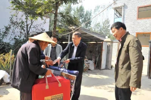 為進(jìn)一步弘揚(yáng)中華民族敬老、愛老、助老的優(yōu)良傳統(tǒng)美德,讓結(jié)隊(duì)幫扶村——太康縣王集鄉(xiāng)李小橋行政村90歲及以上老人過一個(gè)溫馨又和諧的重陽佳節(jié),10月12日,周口市稅務(wù)局黨委委員、副局長徐平烽,黨委委員、總會(huì)計(jì)師李霞,黨委委員、總經(jīng)濟(jì)師張振祥等在對(duì)全村9名高齡老人進(jìn)行了走訪慰問,為老人們送上節(jié)日的祝福和價(jià)值近2000元的慰問品。